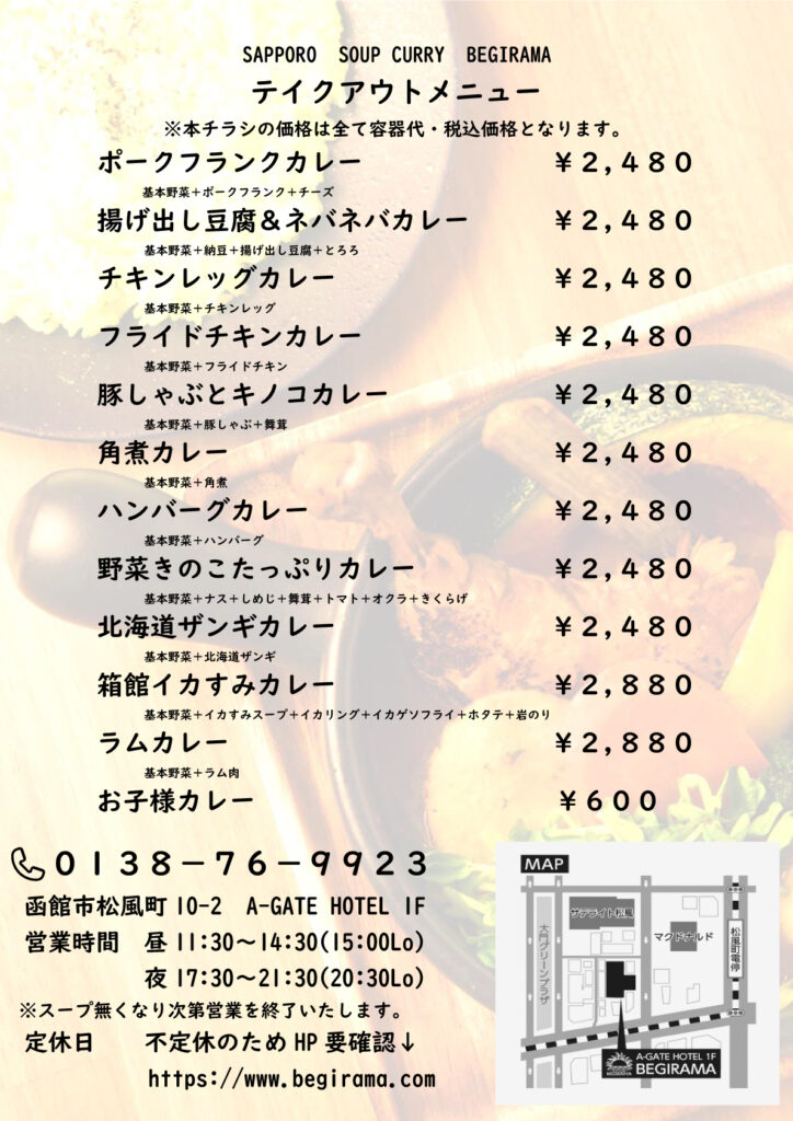 テイクアウトメニュー価格は全て容器代込み・税込価格となります。
